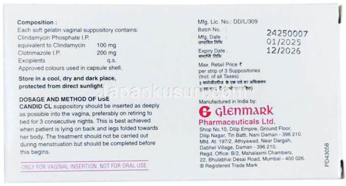 カンディッド CL 膣坐薬 (クリンダマイシン/ クロトリマゾール)
