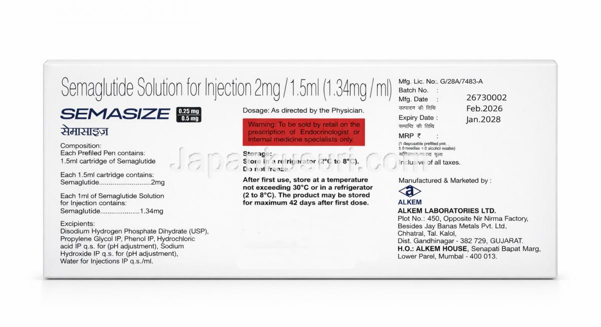 | その他のブランド名 | セマサイズペン型皮下注射, SemaSize Pen Injection, セマサイズプラスペン型皮下注射,SemaSize Plus Pen Injection |