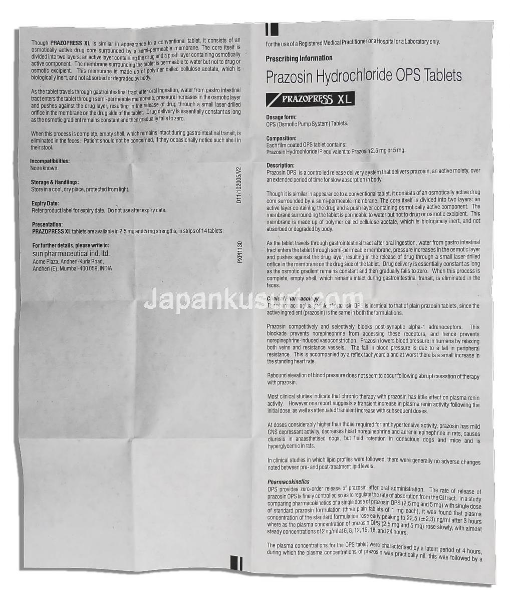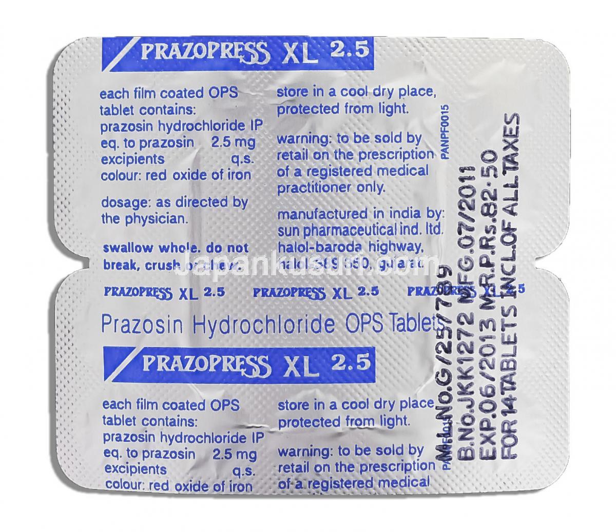 | その他のブランド名 | プラゾピル XL, Prazopill XL, Prazopress XL その他ジェネリック |